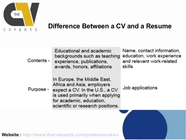 Website : http://www.thecvexperts.com/professional-cv Difference Between a CV and a Resume ...